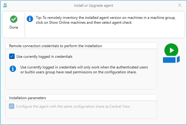 Select machines and then click the Push Agent button. If you see the dialog below, the installations were successful. Pushing the agent install does require requisite permissions for PsExec to perform the installation, not unlike Configuration Manager pushing out the SCCM agent.