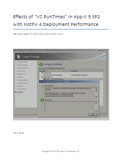 This collection is a series of research papers examining how certain types of application contents affect deployment performance when delivered with App-V.  In each case, I use custom packages filled with just one type of application content and test to see where it impacts performance.  Shared Content Store Mode is compared to local caching, and all combinations therein.  Each paper is 15 to 30 pages, making them a great light summer reading program for virtualization pros!
